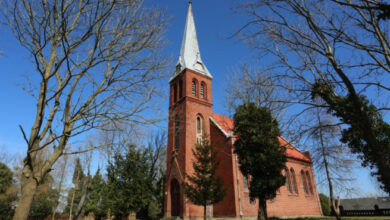 Kościół wybudowany w XIX wieku z cegły z dzwonem na wieży z XVI wieku. Świątynia w stylu neogotyckim. Poświęcony 28…