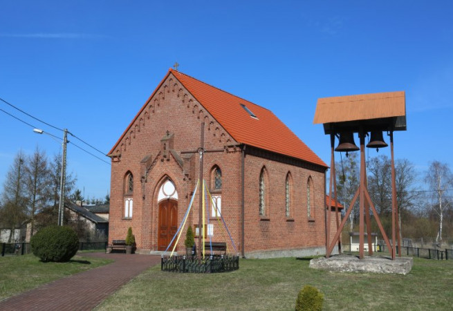 Kościół neogotycki z cegły pochodzący z IV ćwierci XIX wieku. Poświęcony 16.05.1946r.